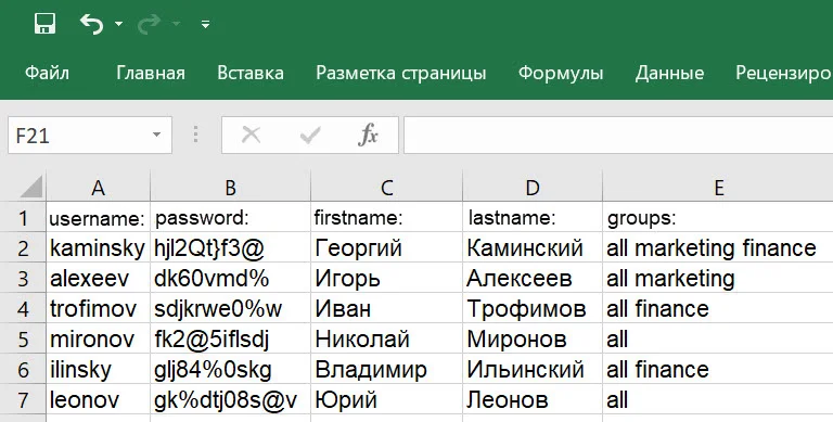После этого укажите адреса и пароли почтовых ящиков всех сотрудников. Сделать это можно вручную или с помощью CSV-файла. Если сотрудников в компании немного, вбейте их данные вручную в разделе «Пользователи». Если компания большая, создайте CSV-файл — он позволяет загрузить все данные сразу.
