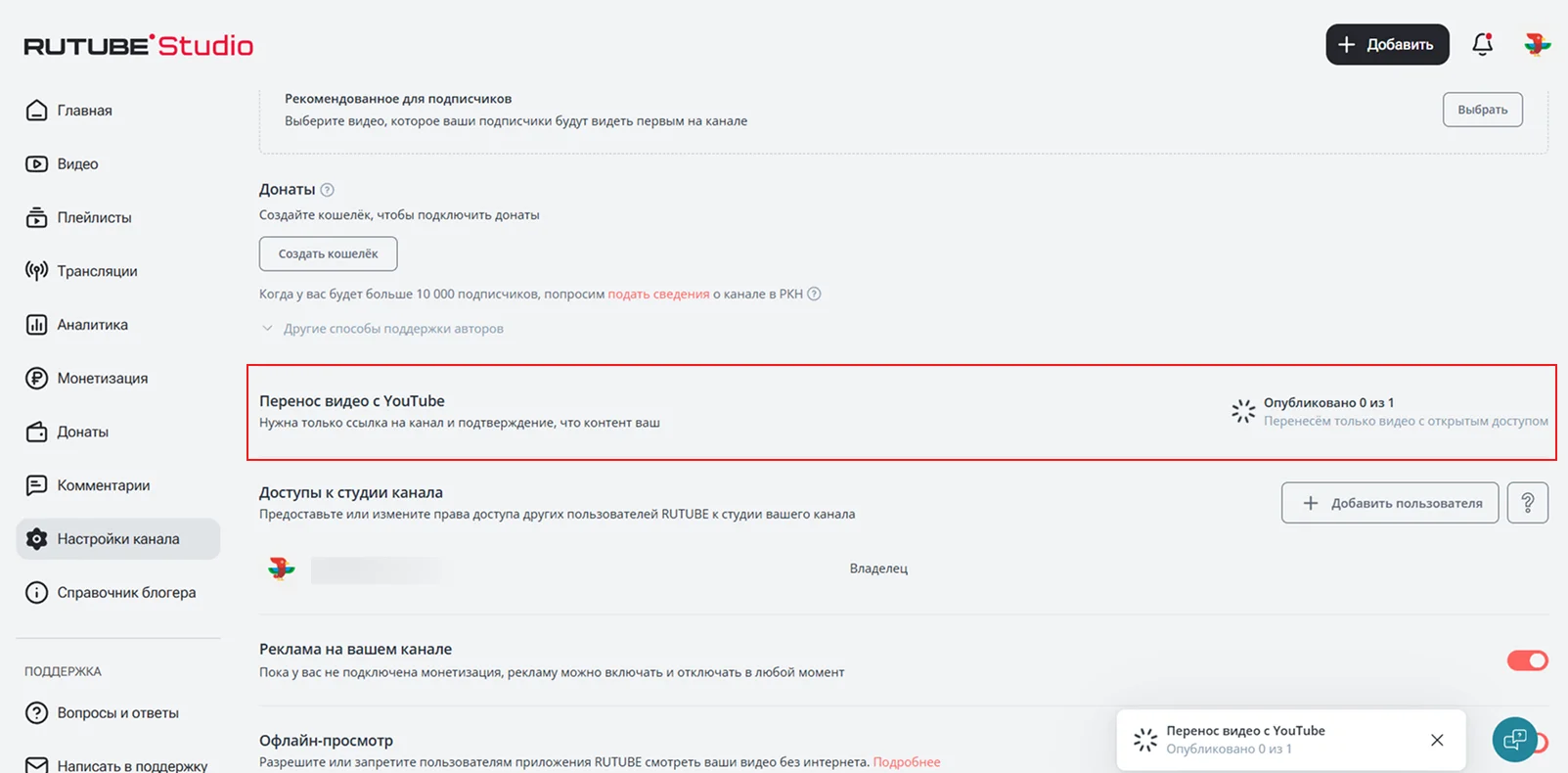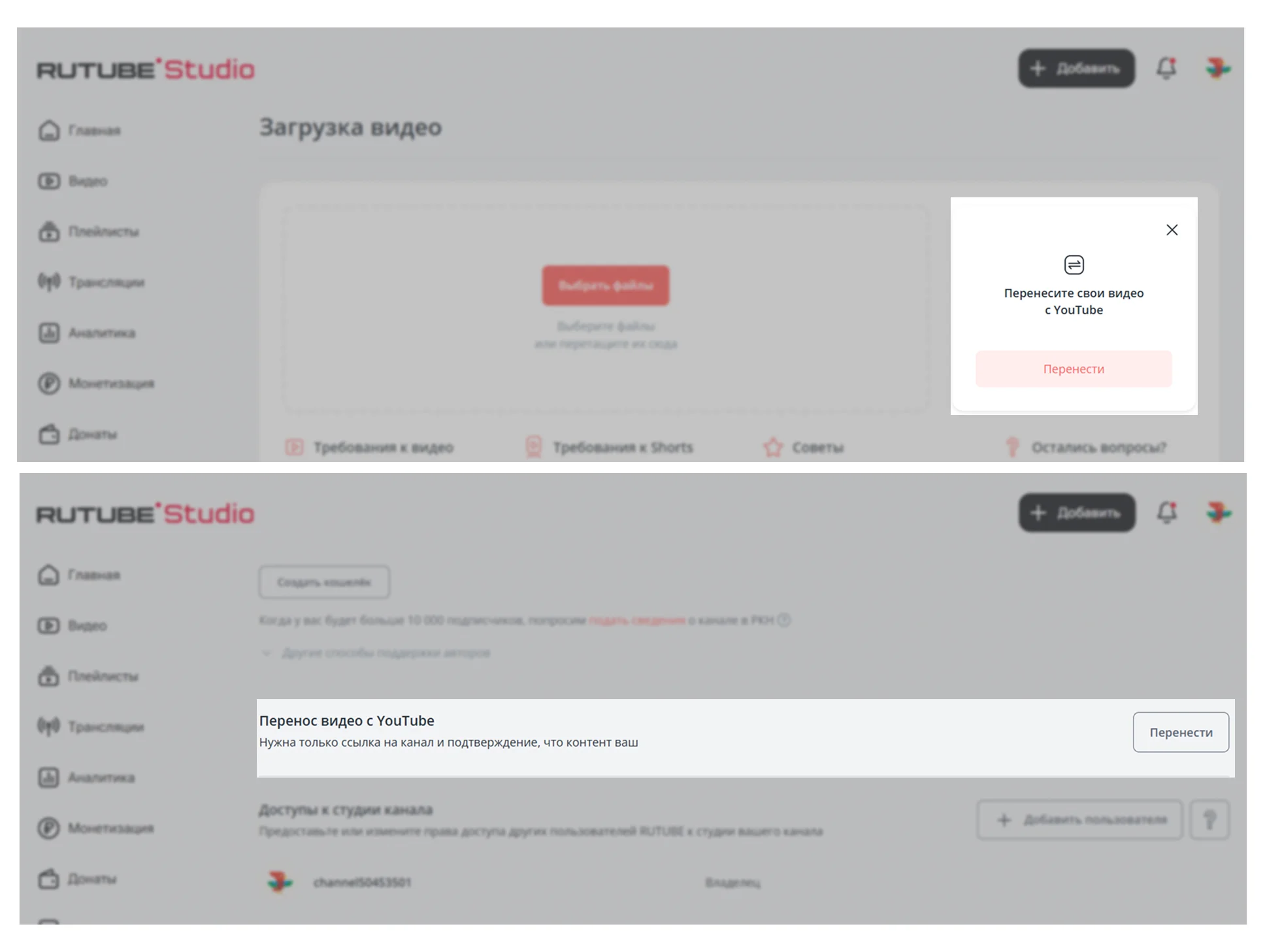 Подробная инструкция, как перенести видео с YouTube на Rutube есть в FAQ сайта. Есть ограничения для переноса видео:
