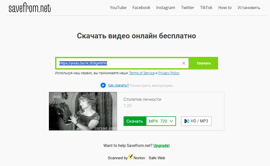 1. Перейдите на сайт Savefrom.net. Вставьте ссылку на видео и подождите пару секунд.