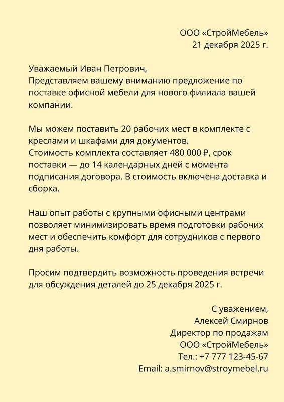 Пример письма-оферты: