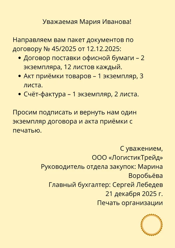 Сопроводительное письмо используют как пояснение к пакету документов. Оно помогает адресату понять, что пришло и что с этим делать.