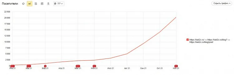 Результаты впечатляют: наш клиент, заказчик кейса, получил за неделю после публикации более 300 переходов на сайт по ссылке и 15 лидов. Трафик продолжает идти и сейчас, спустя почти 2 года. Люди до сих пор находят статью в поиске, читают, регистрируются на сайте заказчика — значит, публикации достигают цели.