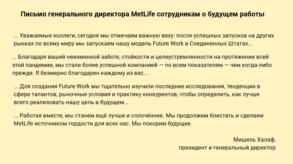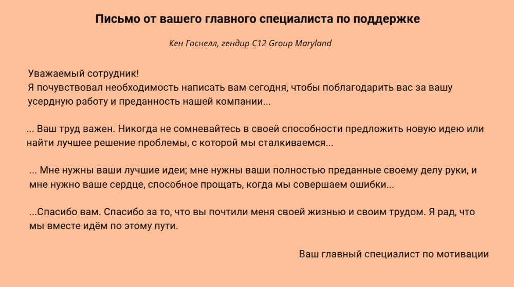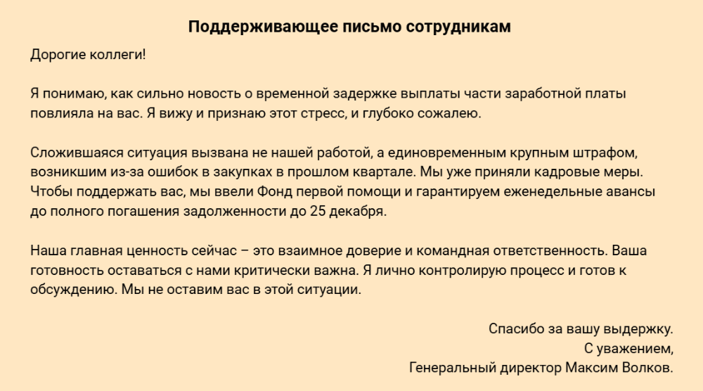 Обязательно подумайте над тем, каких ответных действий или поведения вы ожидаете от сотрудников и в чем состоит польза для вас как для руководителя. Например, ускорить процессы или повысить лояльность. Такой подход поможет вам более понятно донести информацию и сделать акцент на нужных моментах.