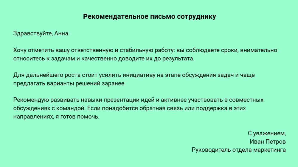 Также заранее уточните любые данные, на которые будете ссылаться. Например, даты, адреса, контакты, внутренние регламенты, показатели, ссылки на документы. Неверная цифра или опечатка в названии могут ввести сотрудников в заблуждение и затруднить понимание, а порой и выполнение задач.