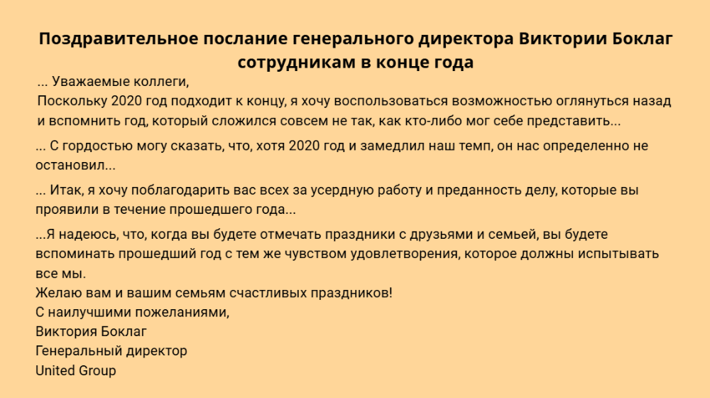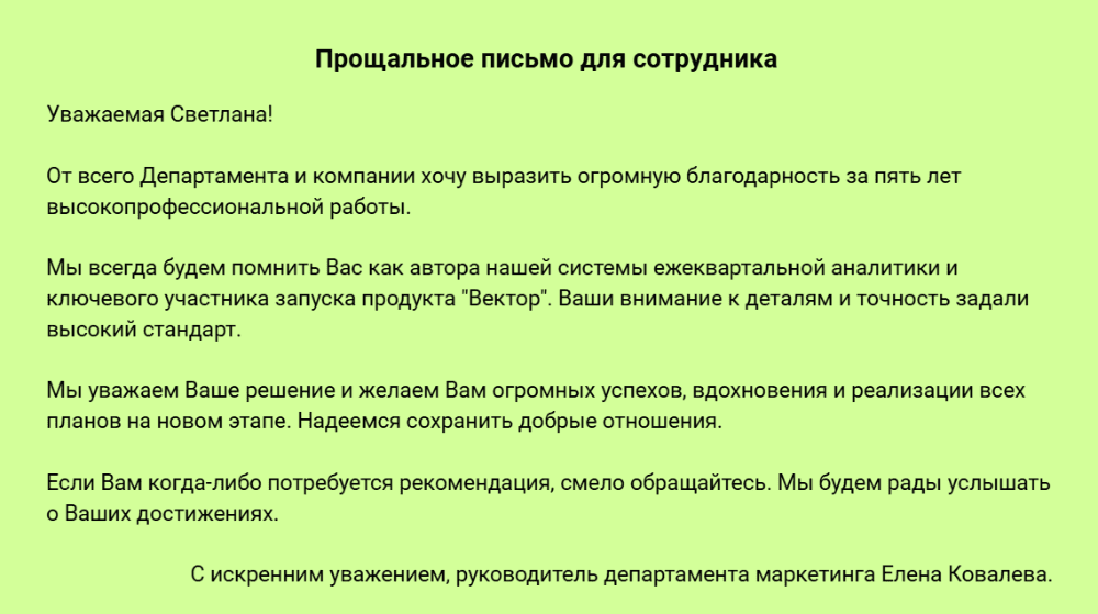 Вы можете написать письмо всему коллективу, какой-то его части или одному сотруднику. В зависимости от этого будет отличаться и подход. Например, в сообщении для: