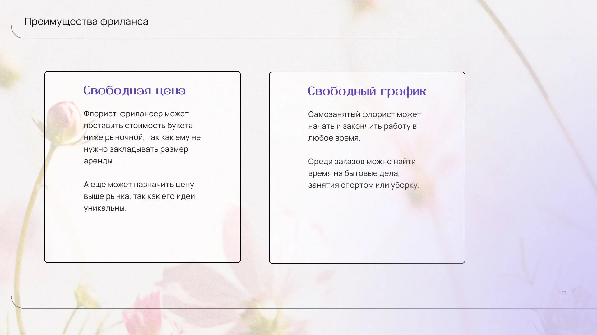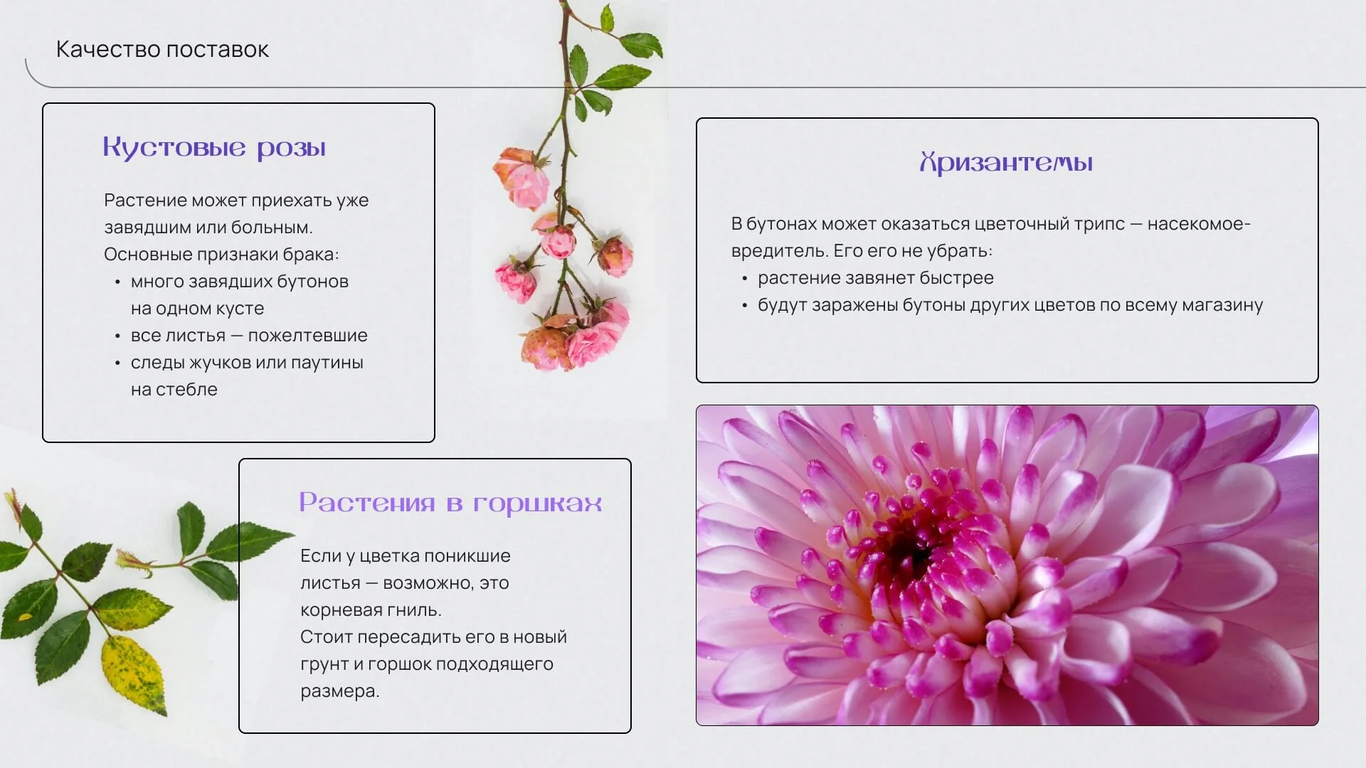 Фотографии. Кадр с общим планом демонстрирует зрителям предмет презентации — товар, кейс или ситуацию. Макросъемка акцентирует внимание на деталях, нюансах использования. Например, с помощью фото можно показать ноутбук целиком или обратить внимание на качество кнопок. В примере ниже изображение в стиле гербария наглядно показывает то, о чем написано на слайде.