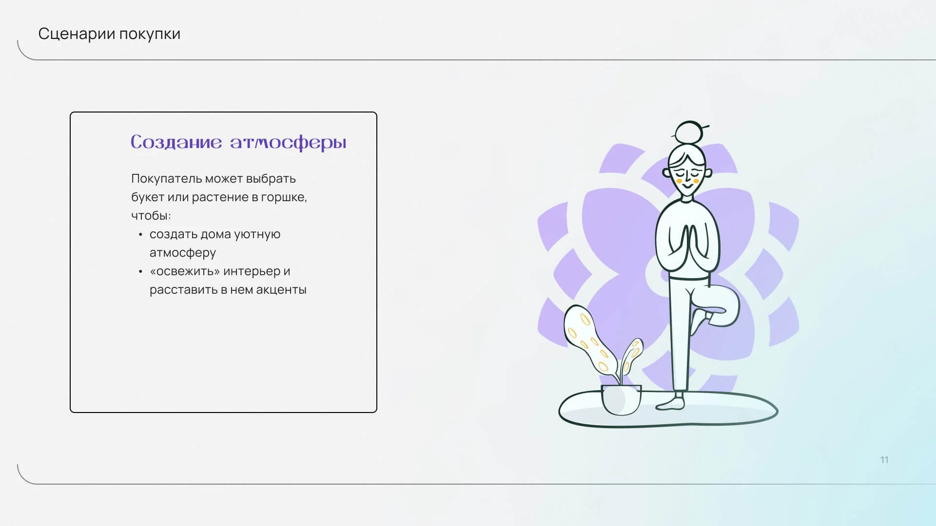| Показать цифровой продукт | Собрать макеты главных экранов, вынести их ключевые детали и увеличить размер |