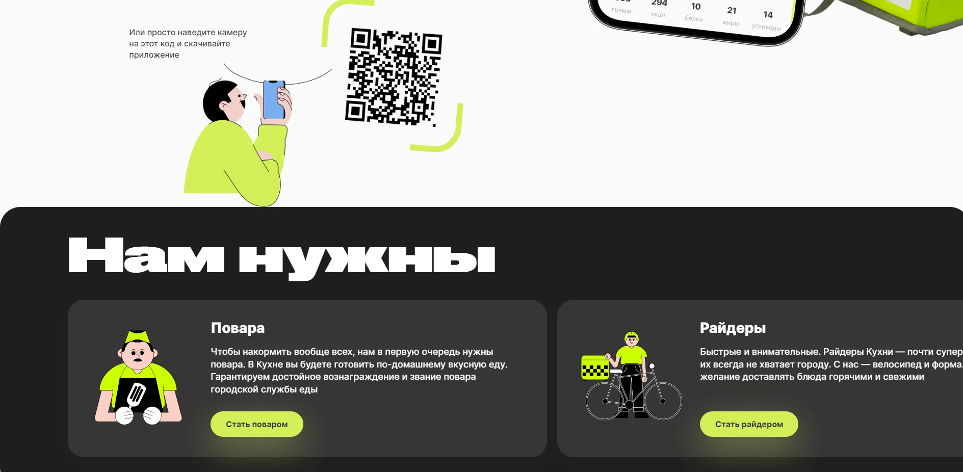 Вот такой пример: здесь сразу в глаза бросается разница между заголовком с нестандартными пропорциями букв и более спокойным остальным текстом. Но у этого остального текста есть разные градации жирности: в подзаголовках и кнопках.