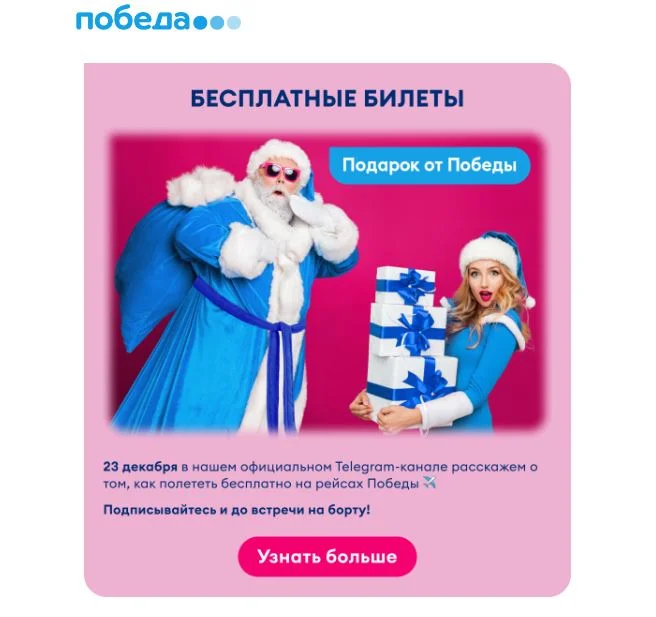 А ещё можно добавить интриги. Например, если у вас планируется акция, расскажите о ней в соцсетях, а анонс сделайте в рассылке. Тут вам и ожидание новогоднего чуда, и прирост базы подписчиков в других каналах.