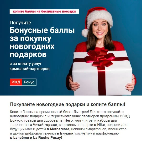 Идеальный вариант для интернет-магазинов. Пообещайте в рассылке бонусы за покупку в последние дни года (рубли, баллы и подобное), которыми клиент сможет воспользоваться после праздников.