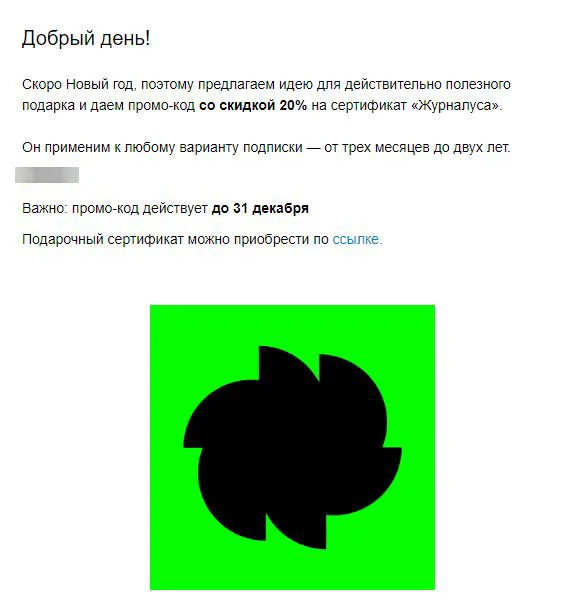 Коллаборации с партнёрами и совместные подарки клиентам — удачная идея, если собственную акцию запустить не успеваете. Спросите у дружественных компаний, нет ли у них бонусов и подарков, о которых вы можете рассказать по своим каналам. Если наберётся сразу несколько акций, смело отправляйте читателям подборку новогодних презентов и скидок.