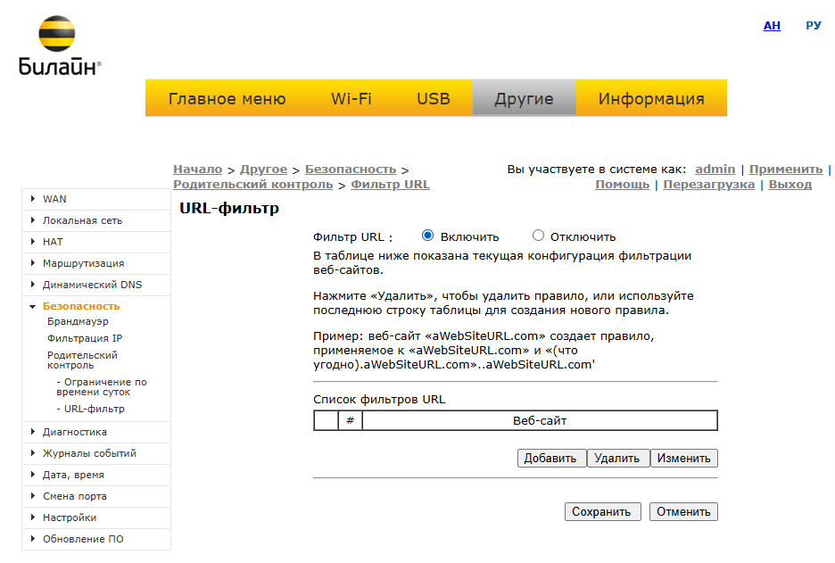 Внутри можно задать список сайтов, к которым запрещен доступ. Их можно добавлять, менять в любое время.