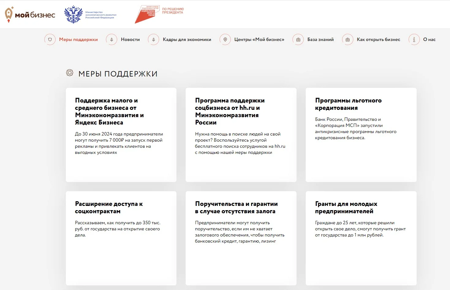 На портале есть подробное описание каждой меры поддержки, ответы на частые вопросы — например, кому подойдет, какие условия нужно выполнить, куда можно потратить деньги.
