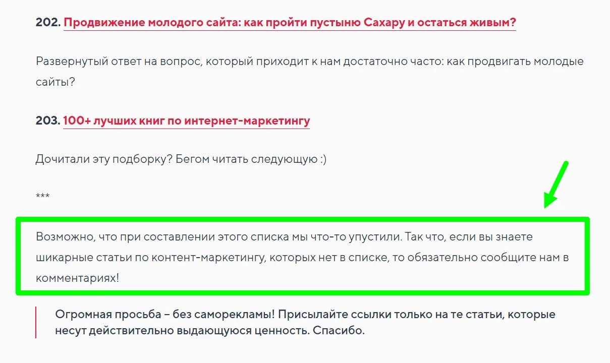 Если ваша статья попадёт в такую подборку в блоге с высокой посещаемостью, то вы получите обратную ссылку с авторитетного ресурса, а заодно и хороший трафик на свой сайт. Ещё один плюс — читатели любят делиться такими подборками в соцсетях. Это даст дополнительные визиты.