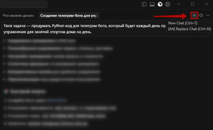 А чтобы начать новый чат, нужно зажать Ctrl+T или кликнуть на соответствующую кнопку в правом верхнем углу.