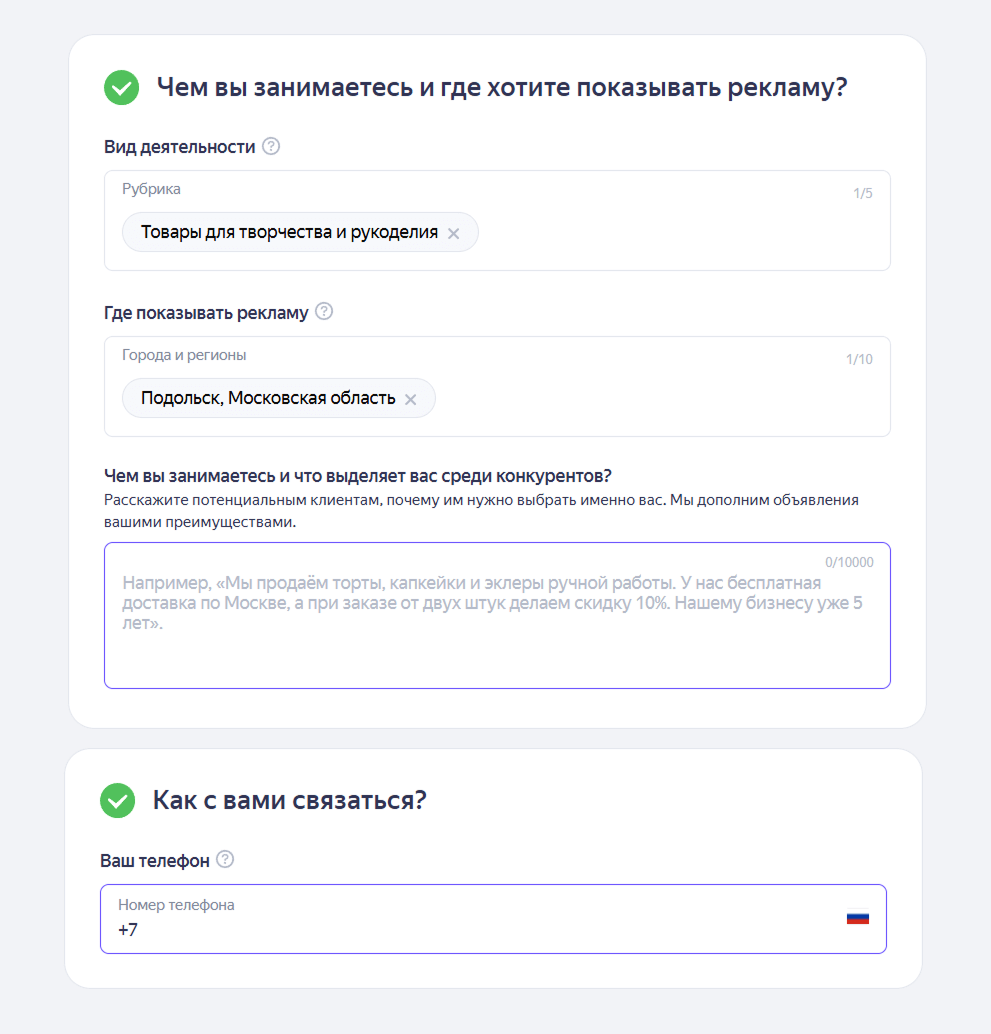 Заполнить рекламный кабинет — дополнить информацию о компании, добавить фотографии, товары и услуги. Это поможет сделать объявления разнообразнее и привлекать больше клиентов.