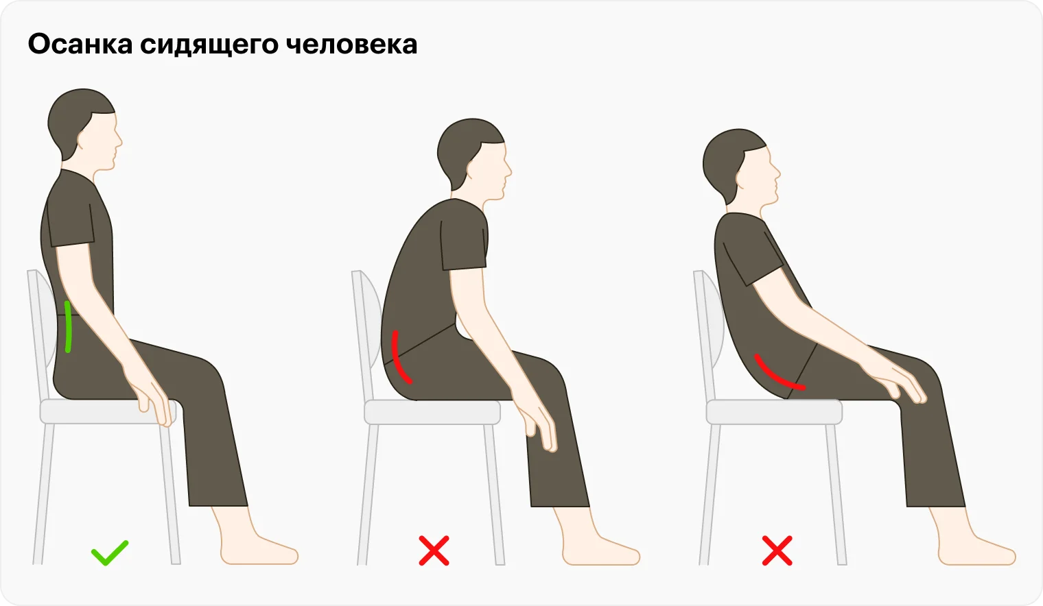 Наше тело не предназначено для длительного сидения. Когда мы сидим неправильно, нагружаем позвоночник, сосуды и внутренние органы. Со временем это может привести к серьезным проблемам со здоровьем.