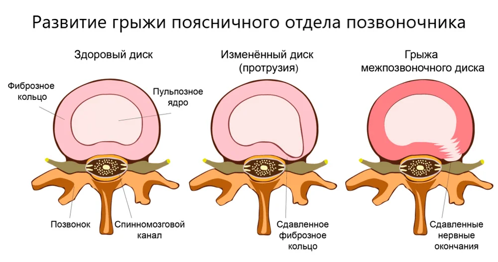 При неправильном сидении происходит неравномерное давление на диски. Нарушается их питание. Если человек сутулится, передняя часть диска сжимается сильнее, а задняя растягивается. Со временем это может привести к выпячиванию диска назад (протрузия) или даже к его разрыву (грыжа).