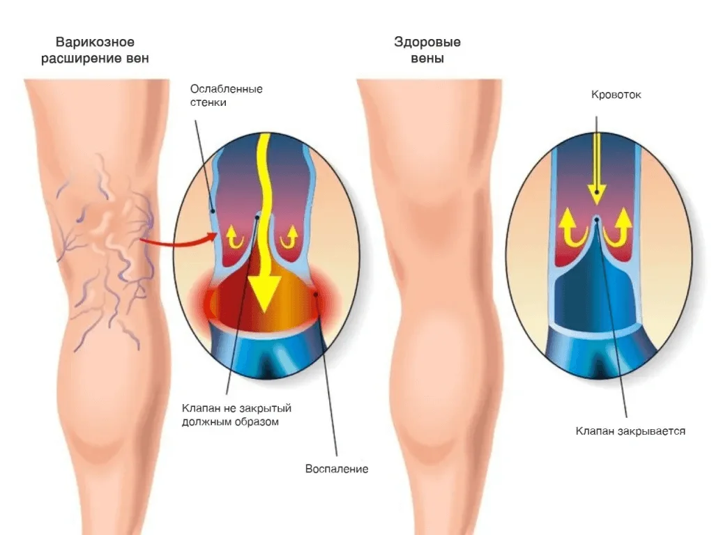 Варикоз НК — заболевание, при котором вены сильно расширяются, удлиняются и становятся извилистыми из-за нарушения работы венозных клапанов. Это приводит к застою крови, отекам, чувству тяжести и усталости в ногах.