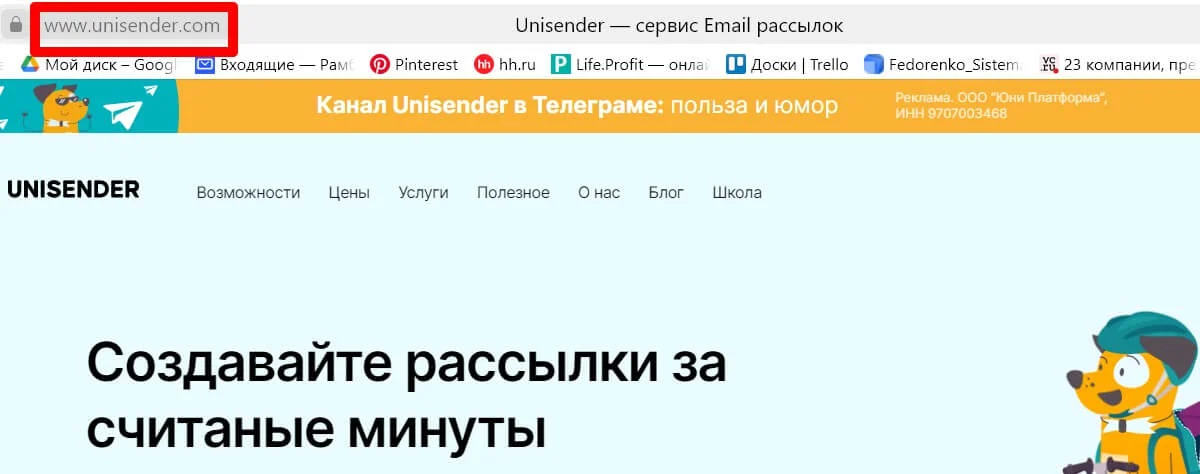 1. По названию компании / проекта или продукта / услуги. Если оно недлинное, это идеальный вариант ― клиентам будет проще запомнить и найти. Примеры: unisender.com, ya.ru, tele2.ru.