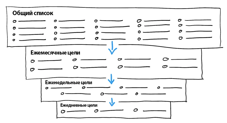 На основе мастер-списка начните расставлять приоритеты по ежемесячным, еженедельным и ежедневным целям.