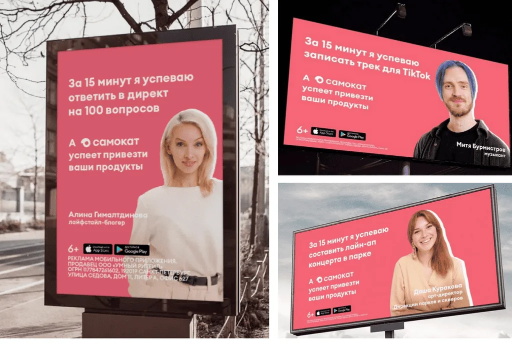 Например, у онлайн-магазина с доставкой продуктов «Самокат» разная целевая аудитория: заказывать еду на дом удобно и молодым людям, и зрелым, и родителям, и студентам. Поэтому у бренда выходит реклама, направленная на разные сегменты потребителей. Для каждого они находят свои крючки. Допустим, мамам и папам демонстрируют в рекламе, как молодые родители заказывают подгузники ребенку. Мужчинам — как такой же мужчина выбирает на завтрак оладьи от «Самоката» и т. д.