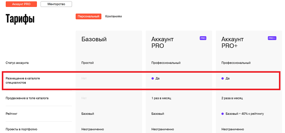 Хотите чаще попадать в зону видимости своей целевой аудитории, получая больше показов профиля и кейсов? Не экономьте на продвижении — сразу оформляйте подписку. Тариф Pro для частных специалистов стоит 595 ₽/мес, а Pro+ — 2400 ₽/мес. Платные подписки для агентств обойдутся в два раза дороже. Но у DProfile есть скидки на тарифы при единовременной оплате за 6 или 12 месяцев.