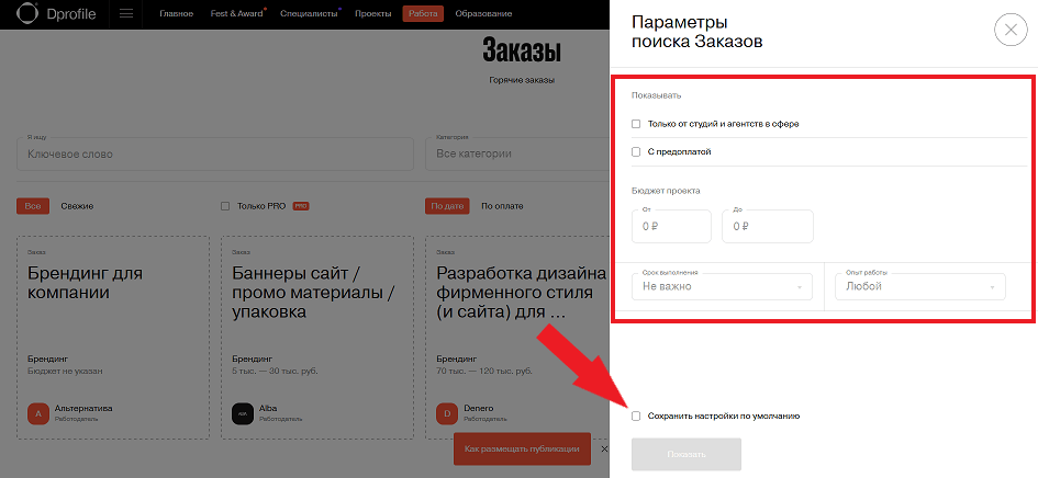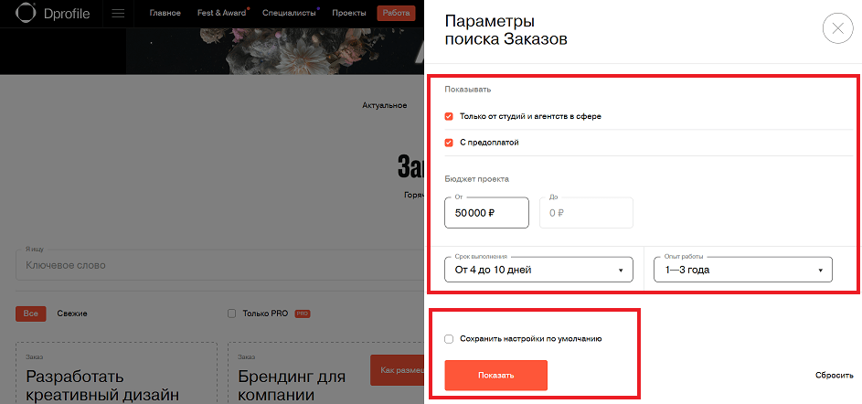 По такому же принципу можно настроить отображение проектов в разделе «Заказы», если вас больше интересуют разовые задачи.