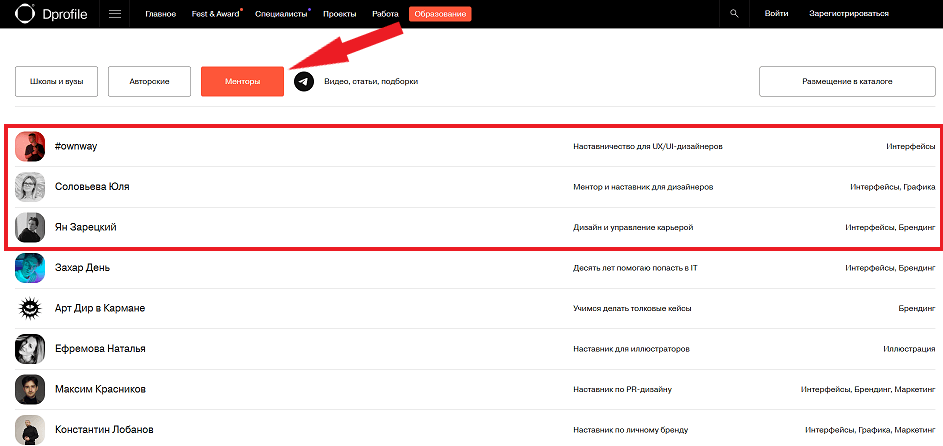 Также DProfile дает возможность специалистам уровня middle и senior зарабатывать на своей экспертизе: получить статус ментора, чтобы платно консультировать начинающих дизайнеров, рекламировать свои воркшопы и курсы в разделе «Образование».