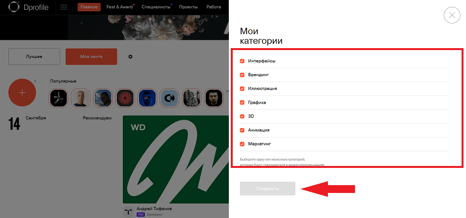 Перед тем как продвигаться на DProfile, определите цель. Если хотите найти заказчиков, оформляйте крутое портфолио и отслеживайте обновления в разделе «Работа». Если ищете коллег для нетворкинга или подрядчиков, изучите раздел «Специалисты». Такой подход поможет избежать расфокуса и прокрастинации.