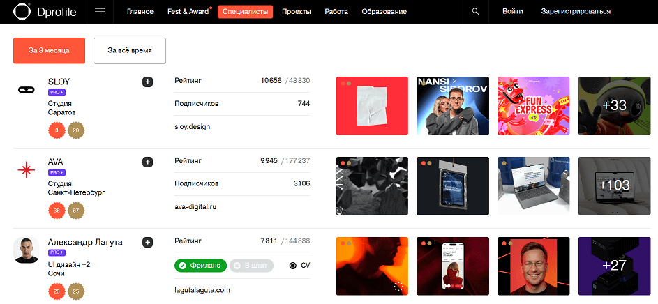 Если хотите использовать DProfile как канал для лидогенерации и продаж, внимательно изучите этот раздел. Учтите, что платформа «торгует рейтингами»: на верхние строчки каждой категории в каталоге, а также в топ лучших специалистов сначала попадают пользователи с платными подписками Pro и Pro+. Вы можете быть трижды гениальным дизайнером, но вряд ли сможете эффективно продвигаться на DProfile без подписки — здесь очень жесткая конкуренция.