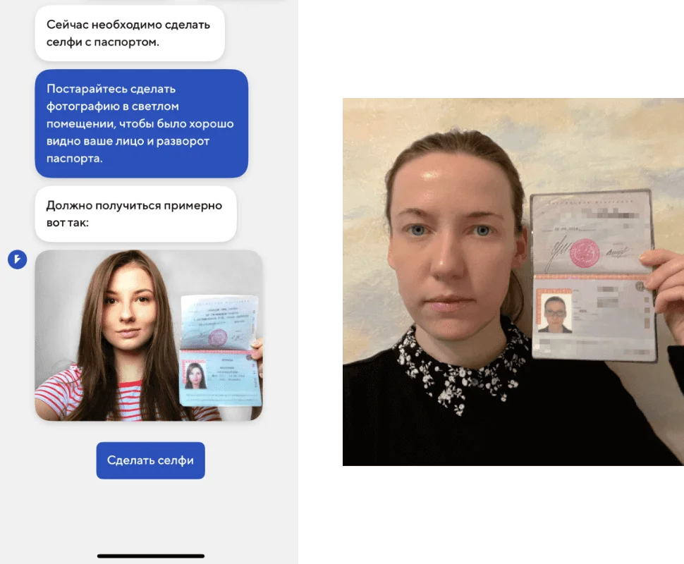 Может потребоваться селфи с удостоверением личности в руках. Это нужно для подтверждения, что документы загружает их владелец, а не мошенник.