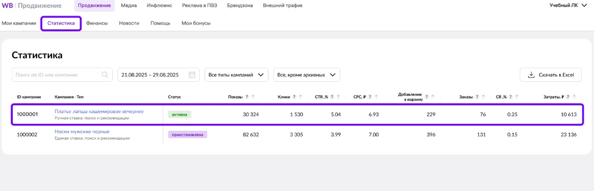 Сбор статистики. Маркетплейсы позволяют отслеживать статистику в личном кабинете продавца — можно сразу посмотреть, как много людей заказали товар с момента запуска рекламы.