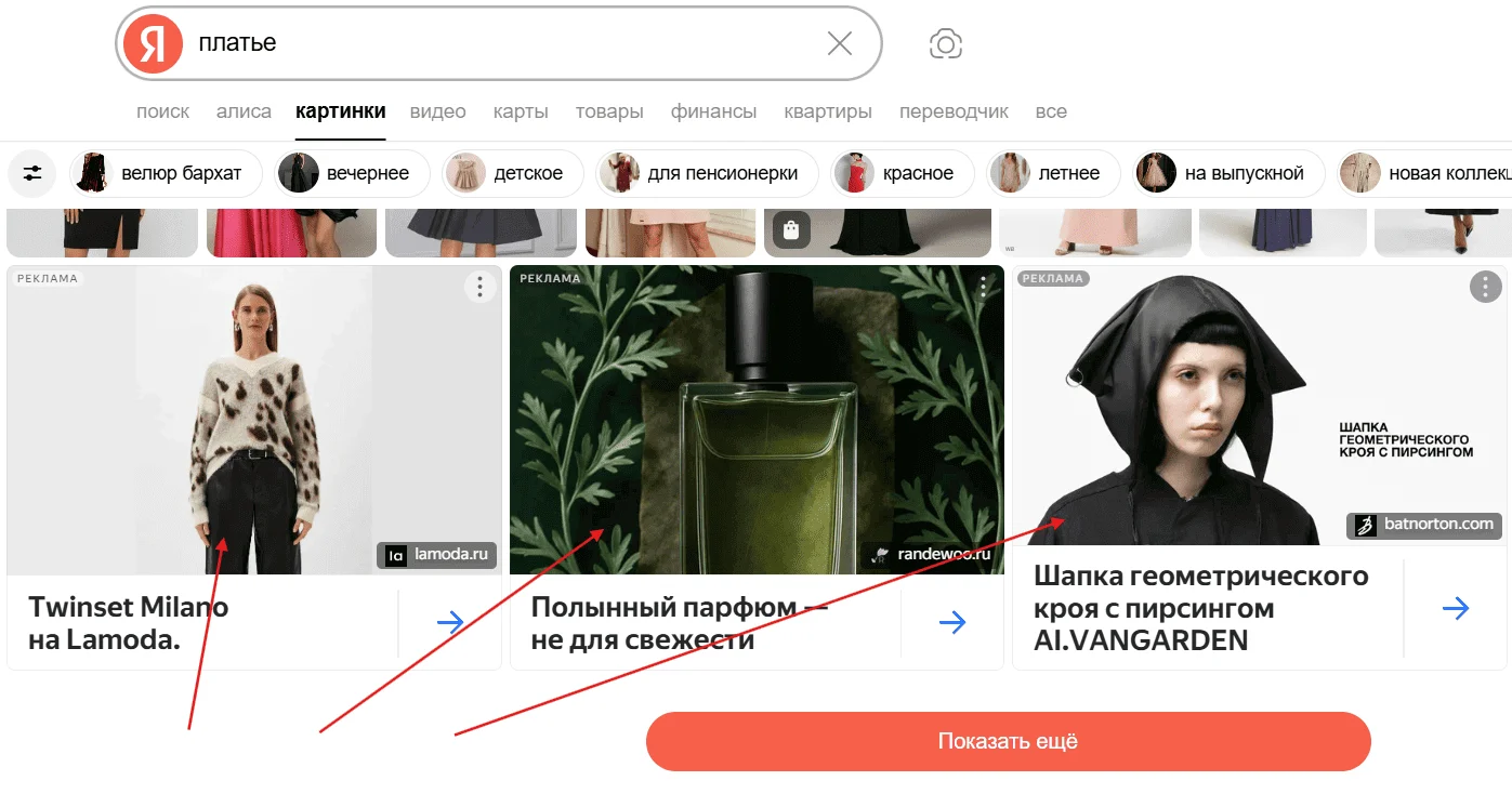 Поиск и каталог. Когда пользователь ищет товар через поисковую строку или в каталоге, он видит список результатов. Первыми в этом списке отображаются карточки, которые максимально соответствуют его запросу. При этом часть товаров попадают в том, потому что продавцы продвигают их с помощью рекламных инструментов.
