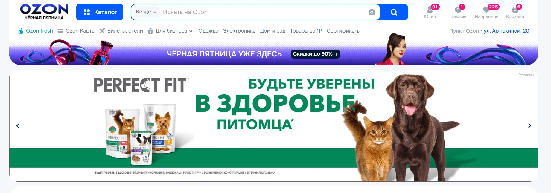 Главная страница маркетплейса. Когда покупатель только открывает приложение или сайт маркетплейса, на главной странице он видит карточки тех продавцов, которые грамотно их оформили и оплатили рекламу на площадке. При этом рекомендуемые товары подобраны с учетом предпочтений человека.
