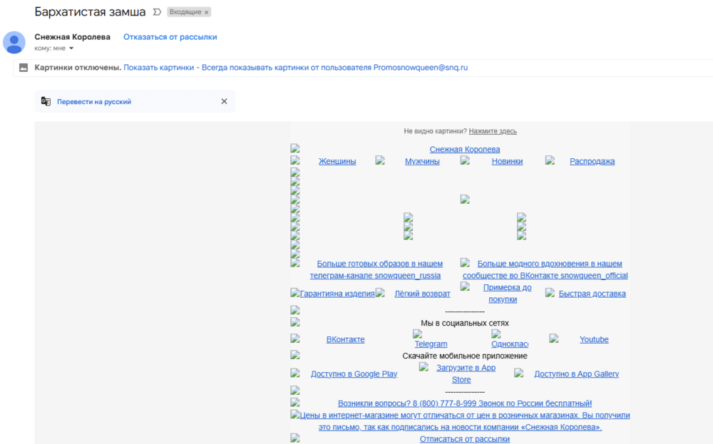 Блокировка изображений. Обязательное условие, чтобы трек-пиксель зафиксировал открытие письма — загрузка изображения. Но пользователь может отключить автоматическую загрузку картинок: тогда он увидит только текстовые блоки, а просмотр сообщения не засчитается в отслеживающей системе. Кроме того, отдельные почтовые клиенты (например, Outlook, старые версии Gmail) не загружают изображения автоматически или требуют разрешения от пользователя. Не дают они прогрузиться и изображениям в письмах, которые сочли спамом (даже если они таковым не являются).