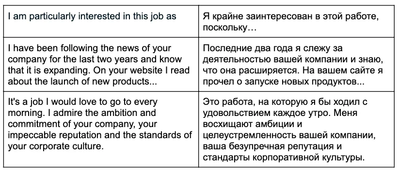 Важно помнить, что ваши компетенции и так перечислены в резюме. В сопроводительном письме на английском нужно дать дополнительную информацию. Например: