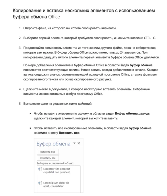 Однако существуют расширенные вариации буферов. Так, буфер Microsoft Office для Windows одновременно вмещает до 24 элементов.