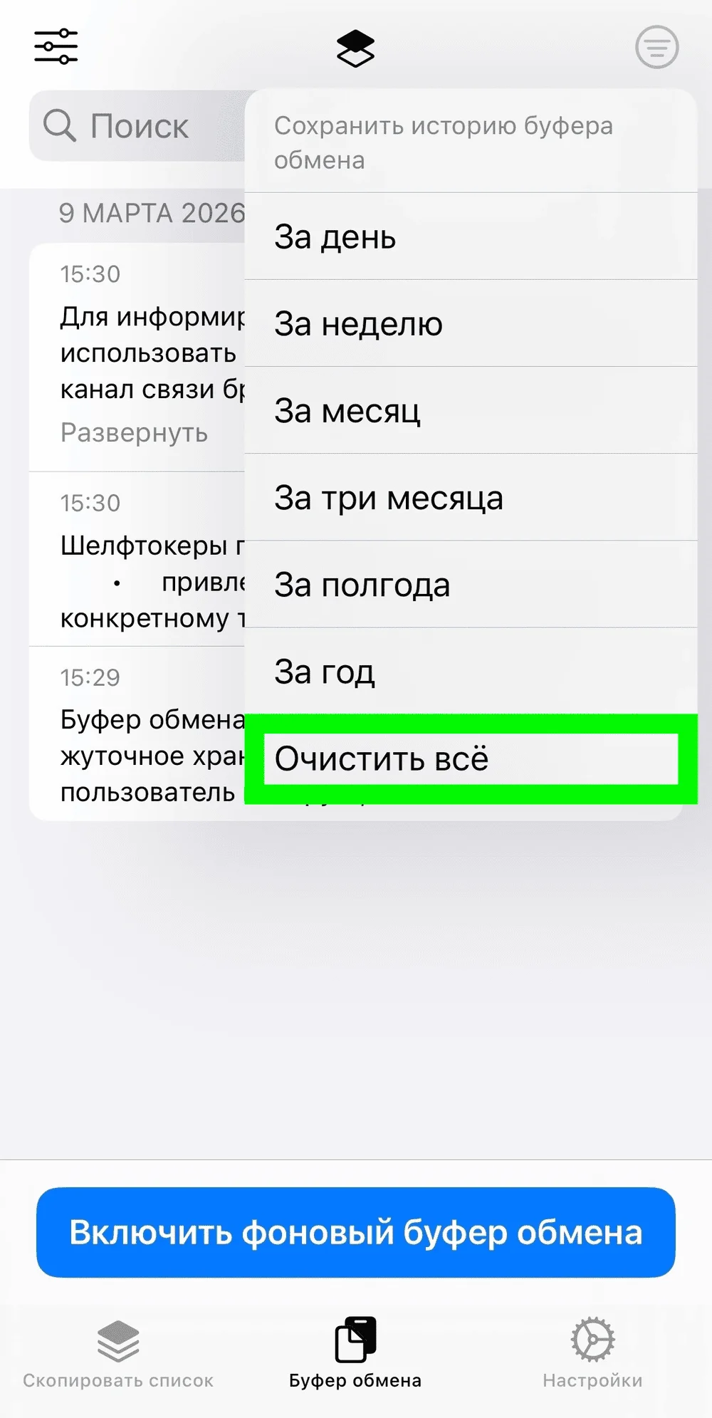 Операционная система iOS не хранит историю данных в целях безопасности. Поэтому пользователь не может посмотреть журнал. Однако есть специальные приложения, которые дают доступ к этой информации. Одно из самых популярных — Clipboard (его можно скачать в App Store).