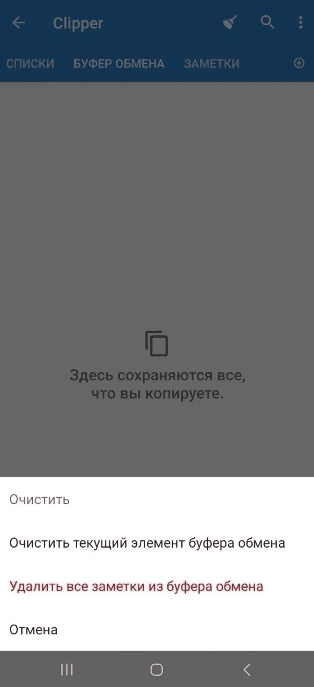 Также можно скачать приложения из Google Play или RuStore. Например, Clipper или «Менеджер буфера обмена».
