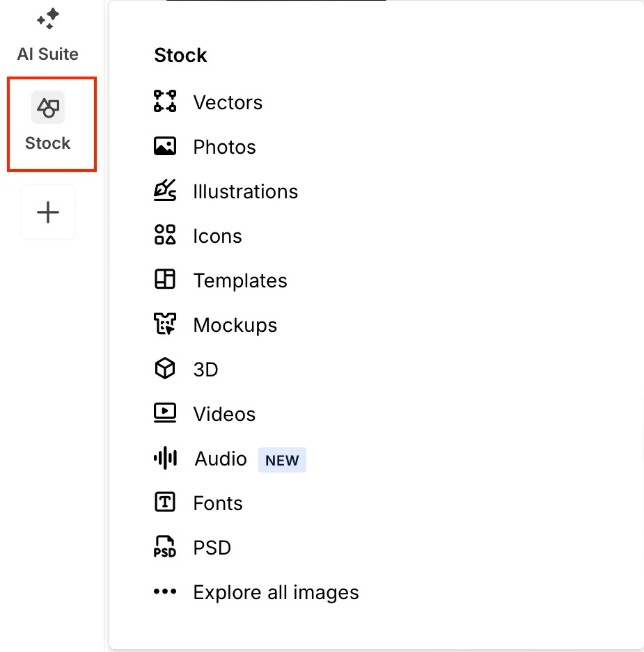 Библиотека с готовым визуальным и аудио-контентом находится в разделе Stock.