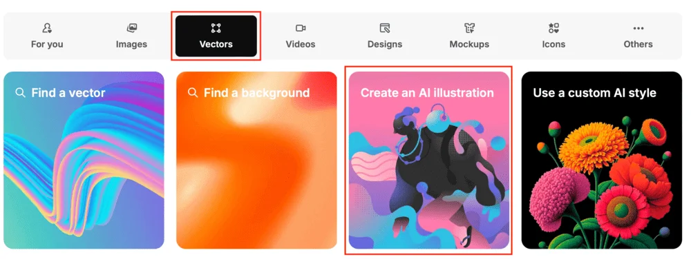 Freepik — это платформа для дизайнеров, в которой собрано сразу несколько нейросетей. Здесь можно генерировать изображения, векторную графику, видео, создавать мокапы, стикеры, обложки и другой визуальный контент. Плюс — есть большая библиотека готового контента, который можно использовать в проектах.