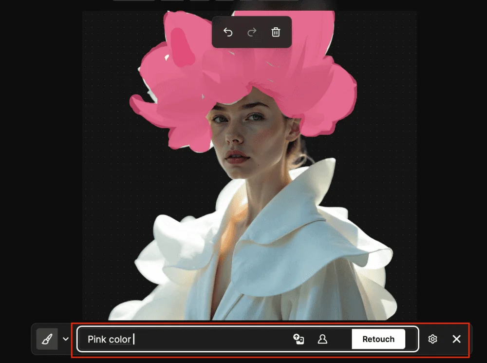 Retouch позволяет изменить детали на изображении с помощью промпта. Выделите объект, который хотите поправить, напишите запрос и нажмите Retouch. В качестве референса можно загрузить картинку или портрет с человеком (персонажем), тогда ИИ заменит лицо.