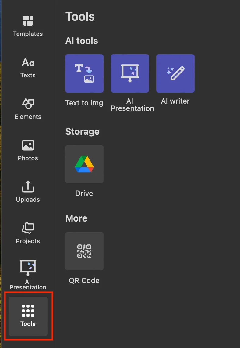 В разделе Tools найдете больше ИИ-инструментов, в том числе для генерации текстов и QR-кодов.