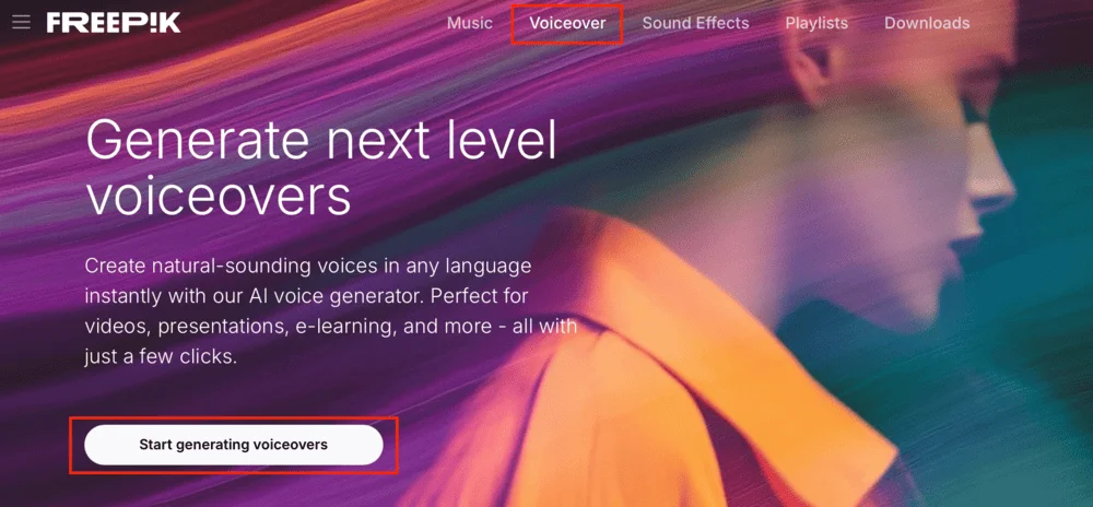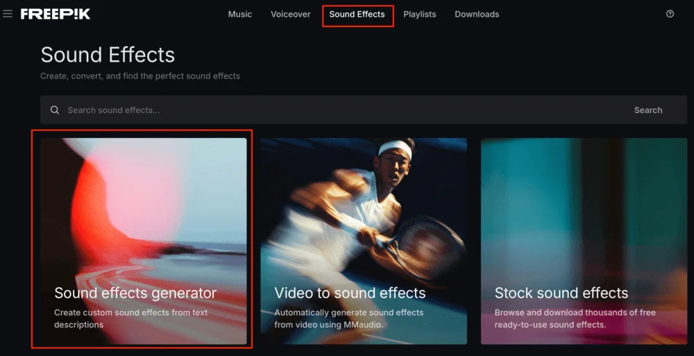 Чтобы создать звуковые эффекты, перейдите в раздел Sound Effects → Sound effects generator → Start Generating Sound Effects.
