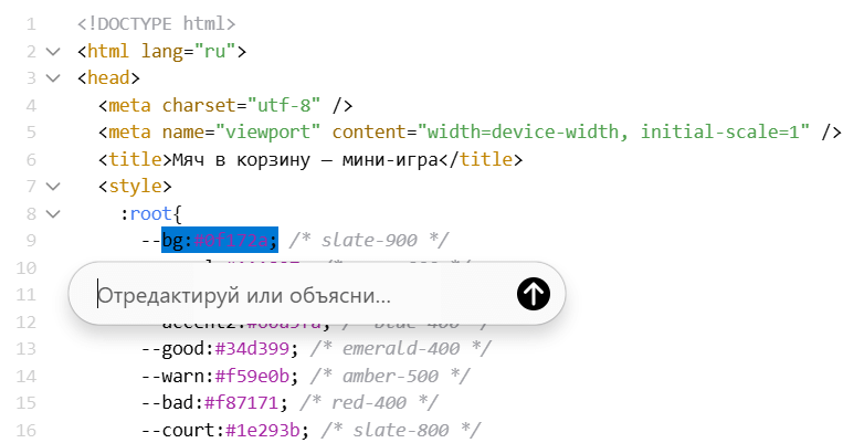 Исправить ошибки. Чат-бот запустит отладку: модель найдет проблемные места в коде и поправит их или прокомментирует.