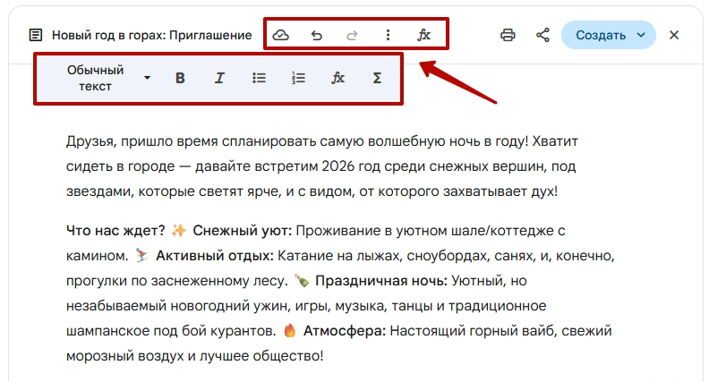 Интерфейс в целом похож на Canvas от ChatGPT: можно править текст вручную, выделять фрагменты и просить Gemini внести изменения. Еще доступно базовое форматирование: