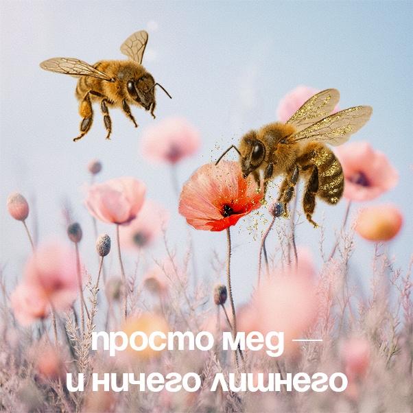 Затем добавим на коллаж фразу «Просто мед — и ничего лишнего». При выборе инструмента «Текст» надпись автоматически отображается как отдельный слой.