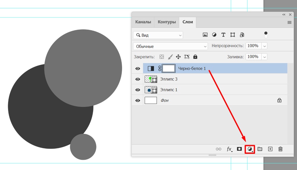 Чтобы добавить маску, нужно выбрать на панели слоев значок прямоугольника с кружком. По умолчанию на маске отображается белый цвет — это значит, что все ее содержимое полностью проявляется.
