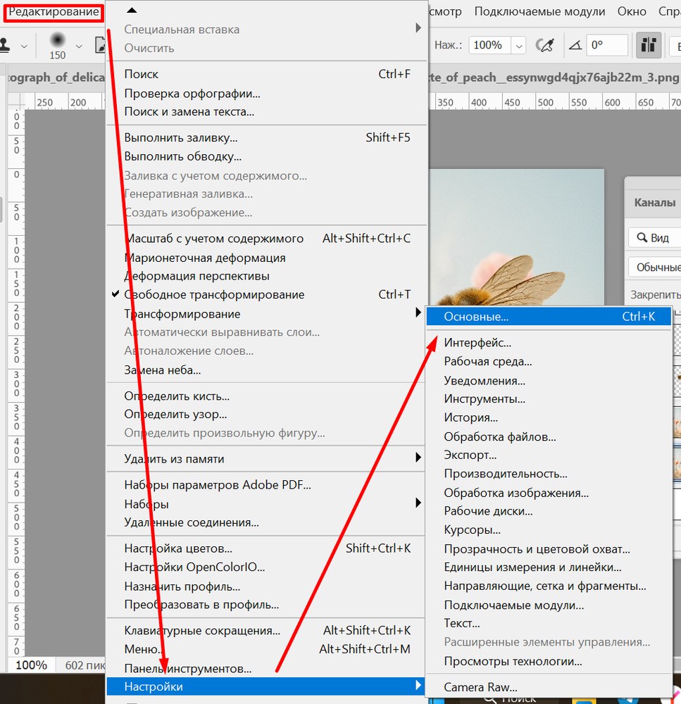 | Основные настройки | Ctrl + K |
